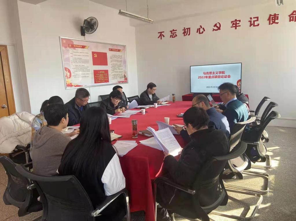 为进一步推动PP电子游戏网站科研工作,提升重点项目立项水平,2022年2月24日上午,马院在学院会议室召开2022年度重点项目申报论证会。东北大学秦皇岛分校社会科学研究院蔡禹龙博士、PP电子游戏官网职业教育研究院王剑锋副院长作为专家出席了论证会。学校科研处人文社科办公室王妹娟博士、PP电子游戏网站领导班子成员、项目申报教师参加了论证会。