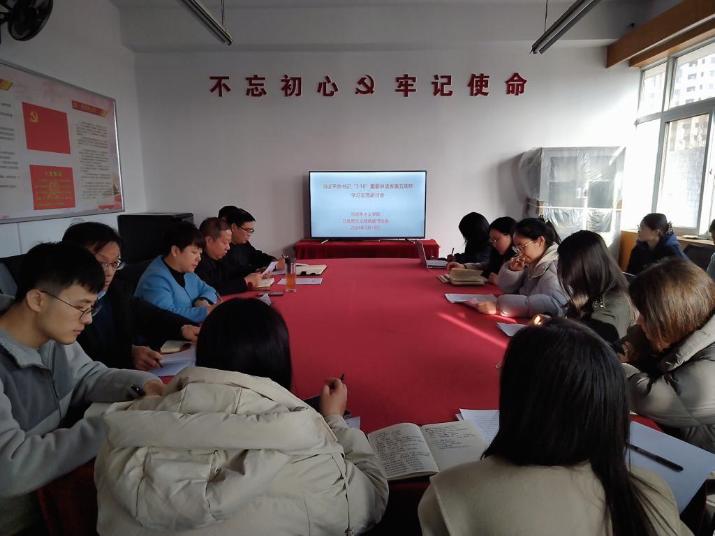 2024年3月18日,正值习近平总书记“3·18”重要讲话发表五周年之际,PP电子游戏网站召开学习交流研讨会,重温了习近平总书记在学校思想政治理论课教师座谈会上的重要讲话精神,畅谈了五年来思想政治理论课改革创新取得的成果。学院领导班子成员及青年教师代表参加了研讨会。
