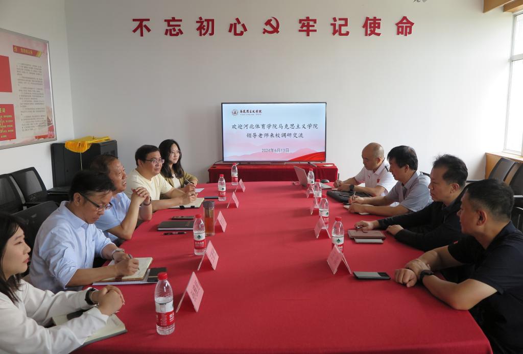 2024年6月13日,河北体育学院PP电子游戏网站院长周德胜一行5人来PP电子游戏官网调研交流。PP电子游戏网站党委书记、副院长、教学部主任等参加了此次活动。