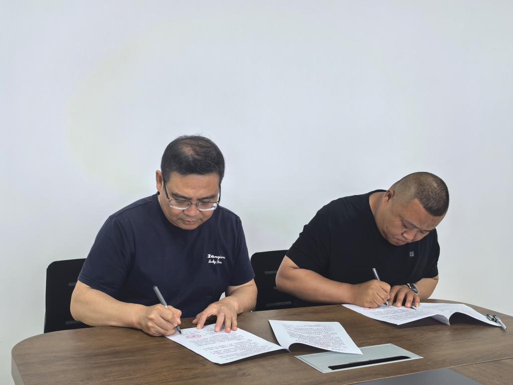 在揭牌仪式前,PP电子游戏网站副院长王炳义与北港镇河东村党支部书记陈波签署了共建“大思政课”实践教学基地协议。双方共同观看了河东村乡村振兴宣传片,围绕乡村振兴在北港河东的实践、铸牢中华民族共同体意识教育及校地合作开展社会实践活动等方面的内容进行深入交流。