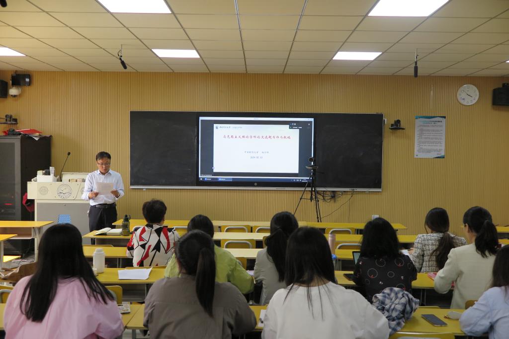 2024年5月23日,PP电子游戏网站举办马克思主义理论学科论文选题与写作讲座。学院相关领导和教师参加了讲座。讲座由学院科研负责人主持。