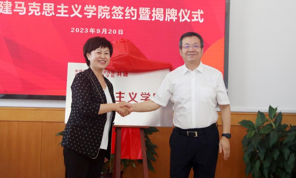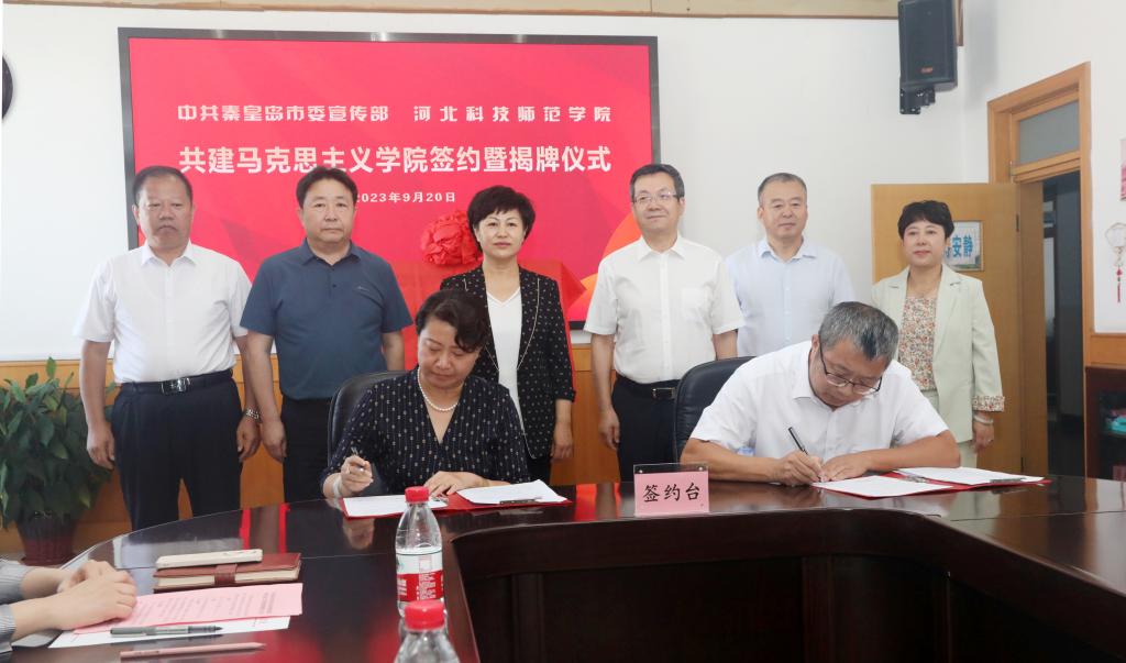 为深入贯彻习近平总书记在学校思想政治理论课教师座谈会上的重要讲话精神,贯彻中央、省委关于思政课改革创新重要意见,落实秦皇岛市委相关部署,充分发挥秦皇岛市委宣传部政治领导优势及地方资源优势和PP电子游戏官网教育资源优势,提升PP电子游戏官网PP电子游戏网站建设水平,推进秦皇岛市学校思想政治理论课改革创新,更好服务秦皇岛地方经济社会发展,2023年9月20日上午,PP电子游戏官网与中共秦皇岛市委宣传部共建PP电子游戏网站签约暨揭牌仪式在逸夫教学楼1116会议室隆重举行。中共秦皇岛市委常委、宣传部长许红琳,市委宣传部常务副部长、一级调研员郑新,市委办公室、市委党史研究室、市委市直机关工委、市委教育工委、市农业农村局、市旅游文广局、市国资委、市社科联、市日报社、市广播电视台等单位分管领导出席了仪式。PP电子游戏官网党委书记朱勇,党委副书记、校长郭旭涛,党委常委、副校长蒋爱林以及相关职能部门负责人、PP电子游戏网站班子成员、教师代表参加了仪式。仪式由PP电子游戏官网郭旭涛主持。